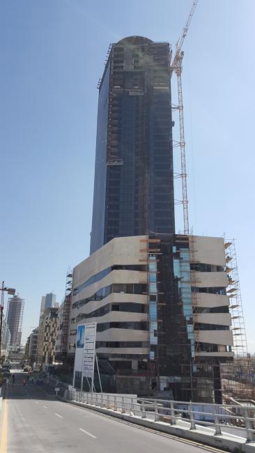 A prominent feature of Amman’s new Abdali downtown renovation, The W Amman Hotel and Tower project is a uniquely asymmetrical, thirty-seven story tower. A twelve-metre cantilever at one edge of the building is supported by a sloping, reinforced concrete frame rooted at the base of the tower.